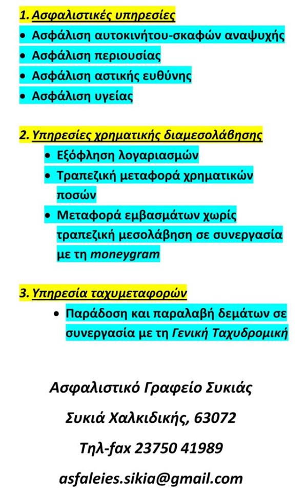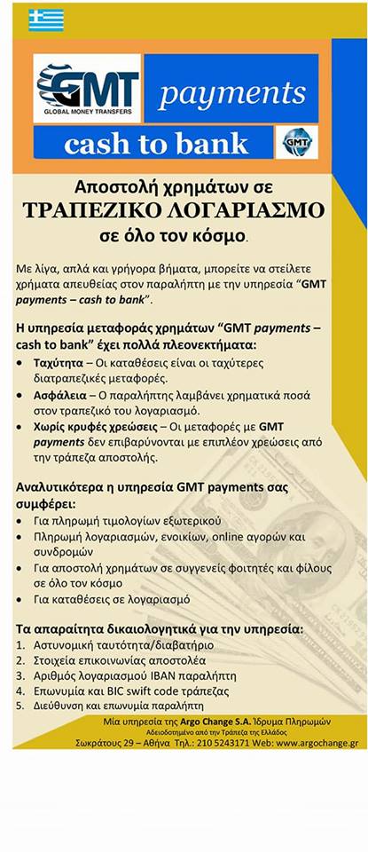 Full insurance services … AND ARGO PAYMENTS … AND WATT + VOLT services … AND courier services (GENERAL TACHYDROMIKI).
