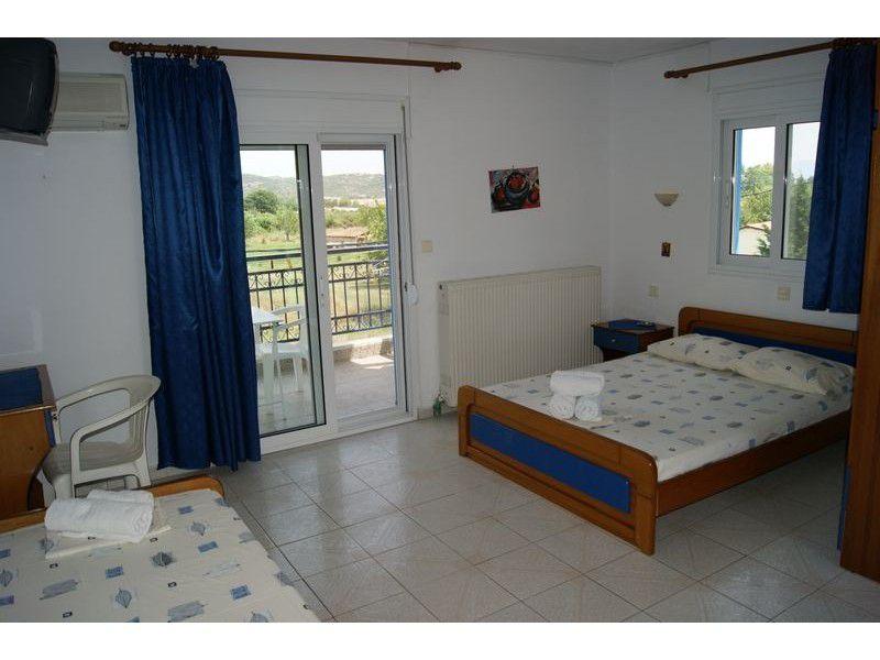Papahristos Rooms is a family business in Sykia, on the 2nd peninsula of Halkidiki, Sithonia. Our Rooms are on the junction of the regional road with the road that takes you to Linaraki beach. We are 900m from the junction of Sykia and 300m from the beach.